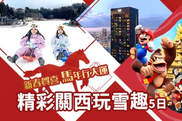 【新春賀喜馬年行大運∼保證入住超五星W HOTEL】精彩關西玩雪趣5日∼兒童不佔床扣NT10000、雪戰開打拉、千年有馬溫泉金之湯、環球影城超級任天堂世界、伊勢龍蝦和牛豪華饗宴